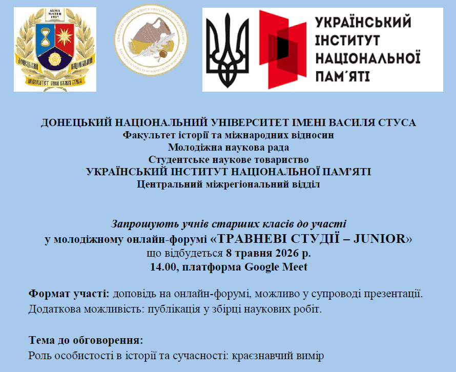 Факультет історії та міжнародних відносин Донецького національного університету імені Василя Стуса сьогодні – це сучасний освітньо-науковий простір, фундаментом якого є потужний професорсько-викладацький склад та сучасні наукові школи.
